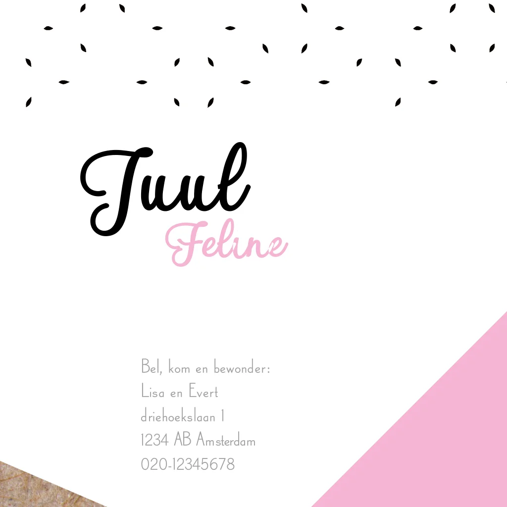 Stoer geometrisch geboortekaartje meisje kraft