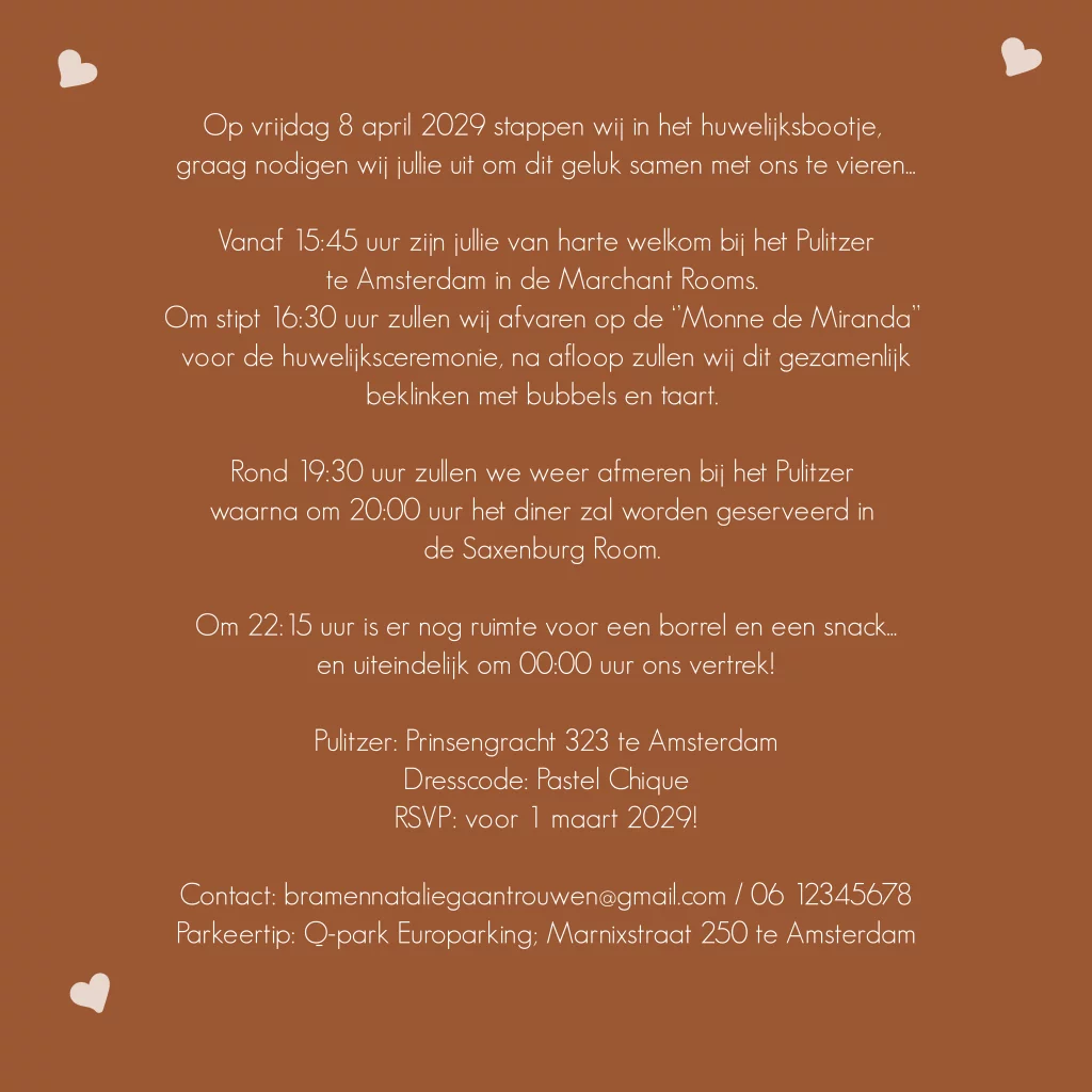 Achtergrondkleur is aan te passen naar de themakleur(en) van jullie bruiloft.