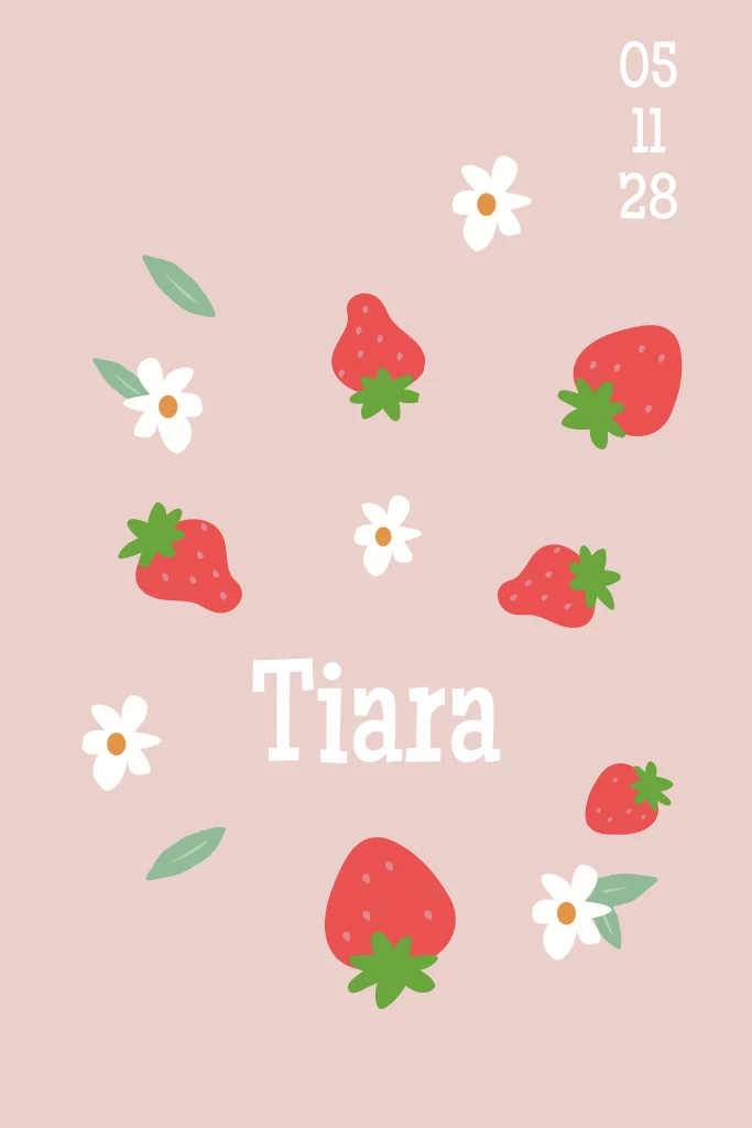 Zomers meisjes geboortekaartje met aardbeien en bloemetjes