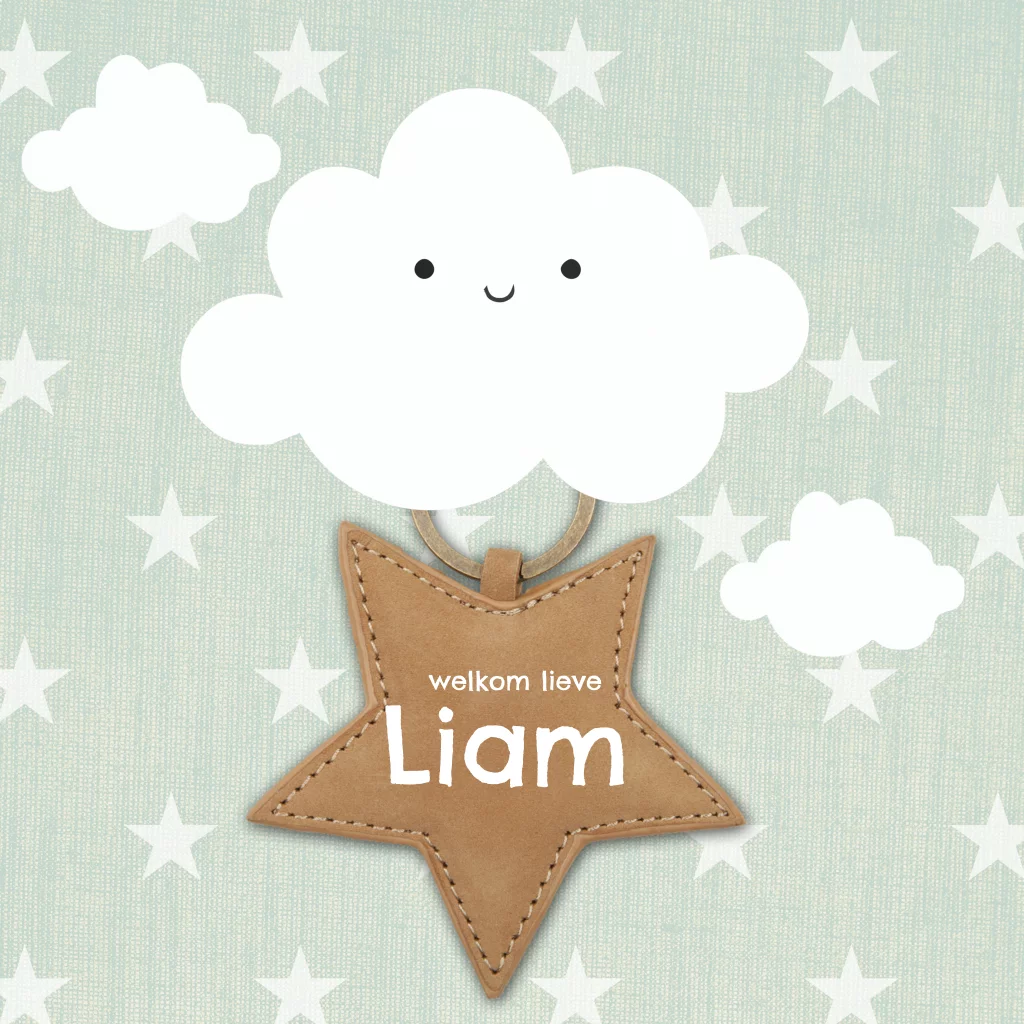 Geboortekaartje jongen met wolkje en sterrenlabel