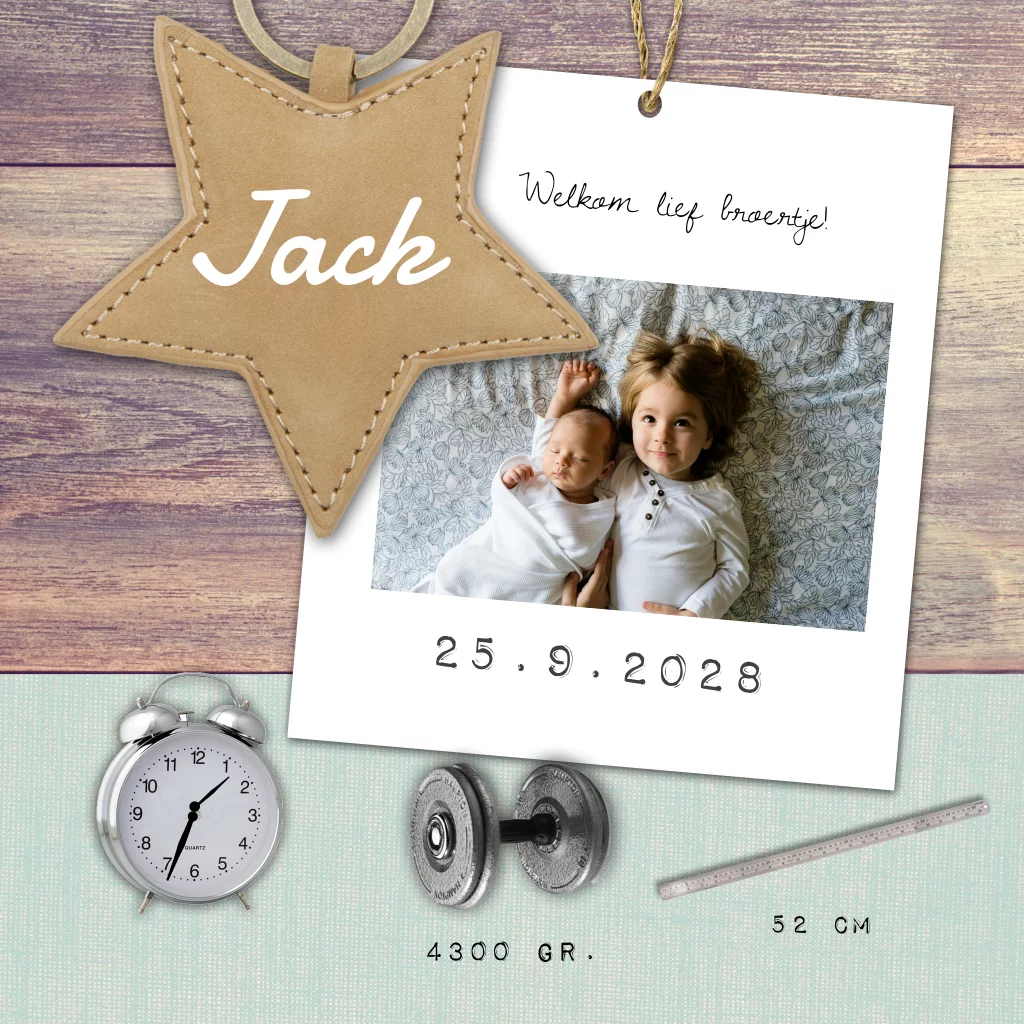 Jongens foto geboortekaartje hoera een broertje voor een 2e kindje met de ruimte voor een foto. (6789)