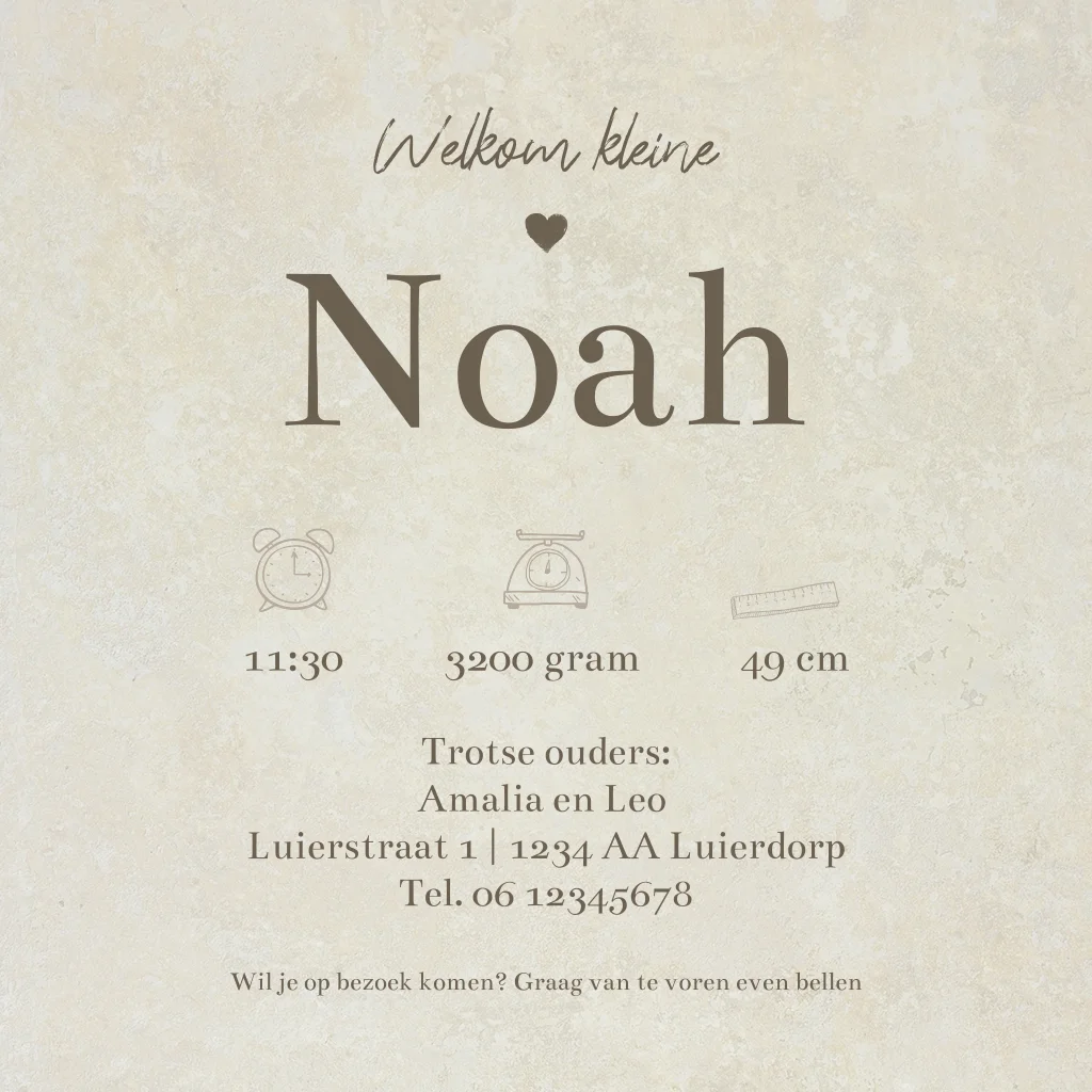 Geboortekaartje jongen in rustige kleur beige met aan de binnenzijde ruimte voor een eigen foto voor een meisje of jongens baby. (24413) Geboortekaartje Noah