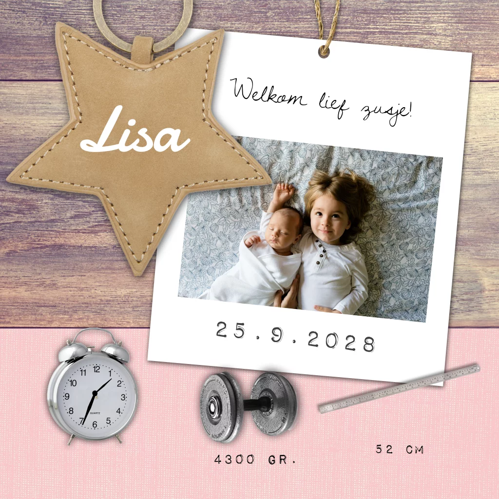 Geboortekaartje meisje hoera een zusje 2e kindje met foto