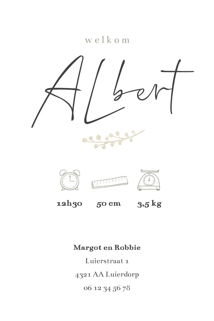 Geboortekaartje voor een jongen met initiaal op warme achtergrond