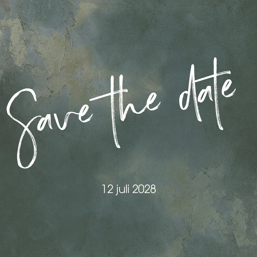 Hippe save the date met goudfolie en groene achtergrond kleur