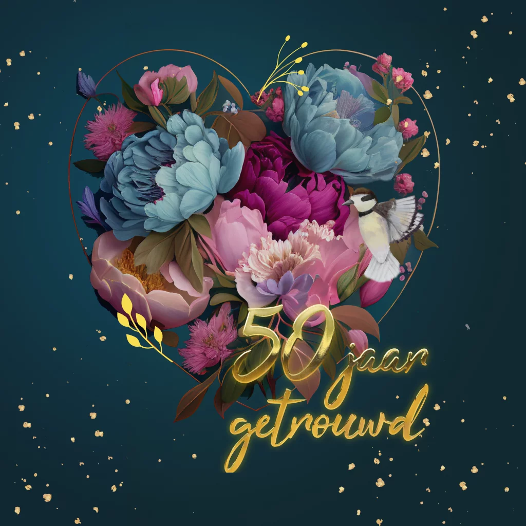 Uitnodiging 50 jarig jubileum met bloemen en hart