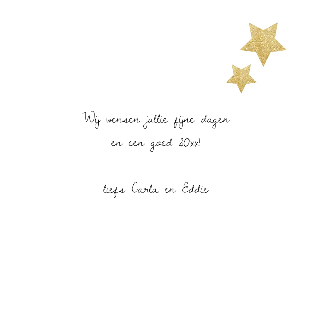Mooie kerstkaart met gouden letters en leuk geïllustreerd gewei erboven. Sfeervolle sterretjes aan de binnenzijde. (7794)