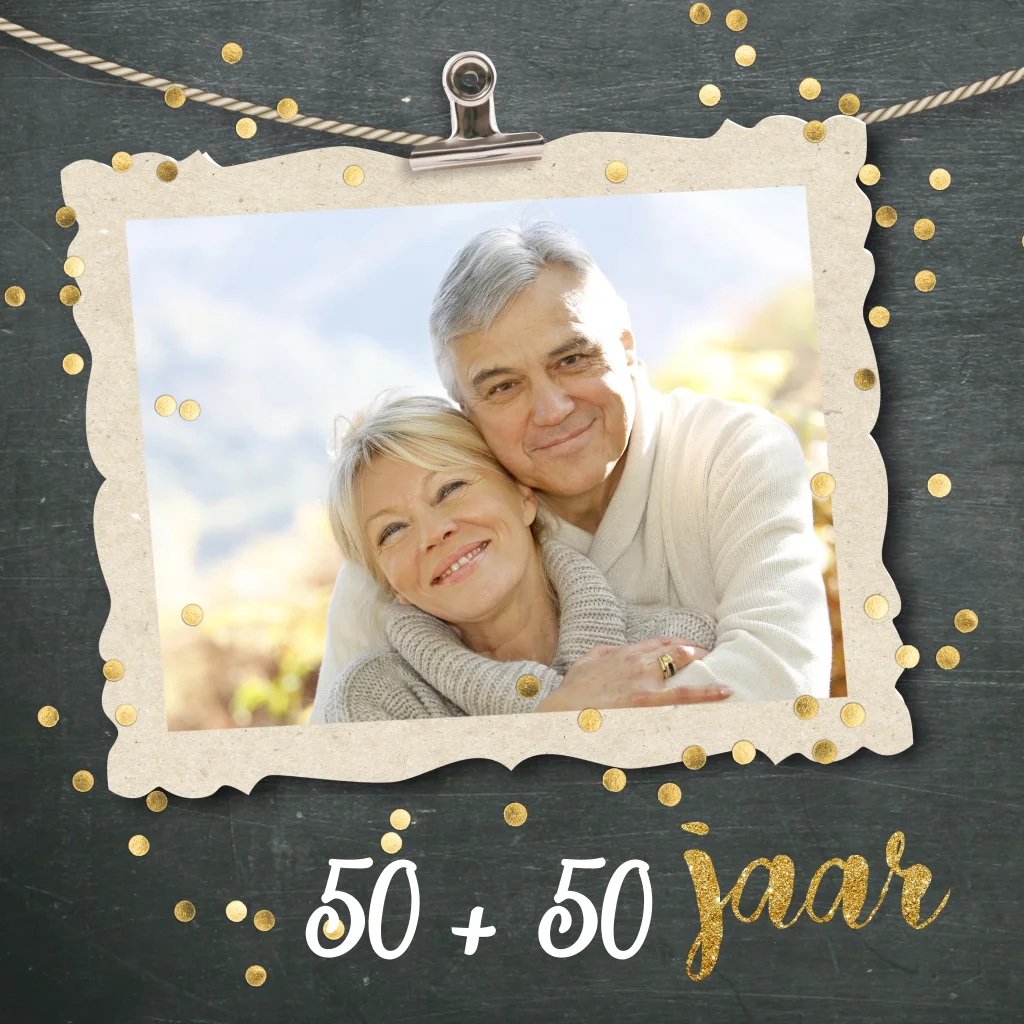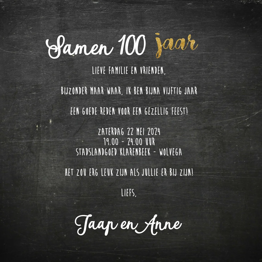 Hippe verjaardagsuitnodiging meg goudkleurige confetti voor een dubbel feest samen 100 jaar. (6602)