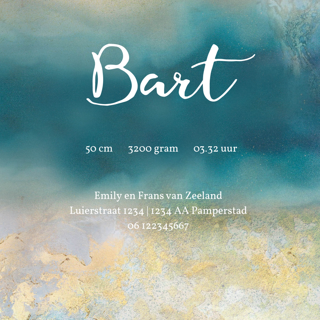 Geboortekaartje voor een jongen met aquarel achtergrond en sterretje. (20805)