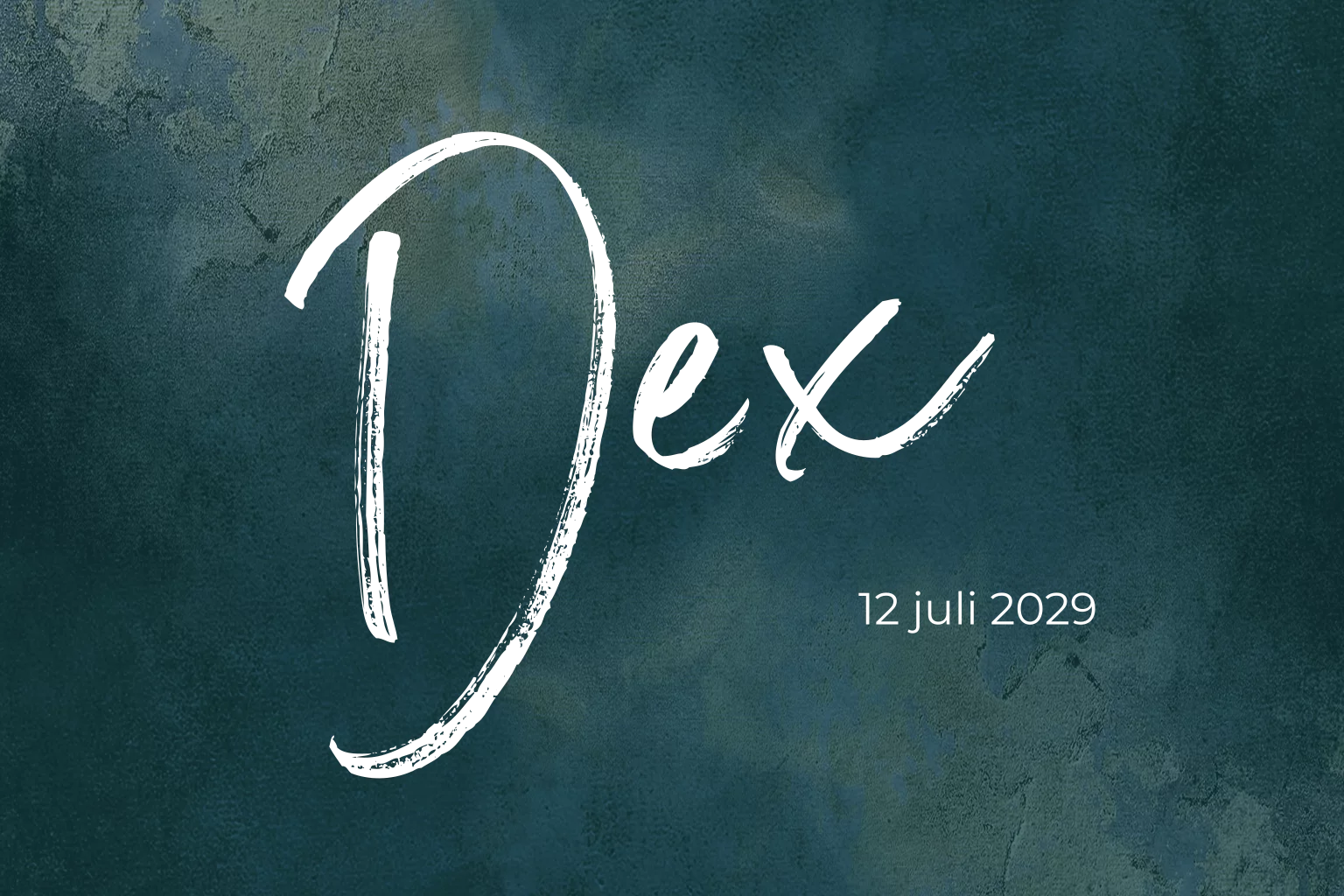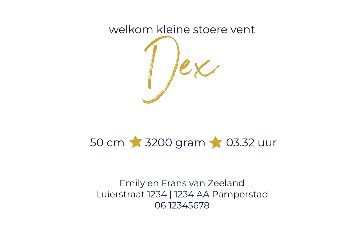 Geboortekaartje donkerblauw voor een jongen met de naam Dex groot in goudfolie, erg mooie en stoere typografie. (21046)