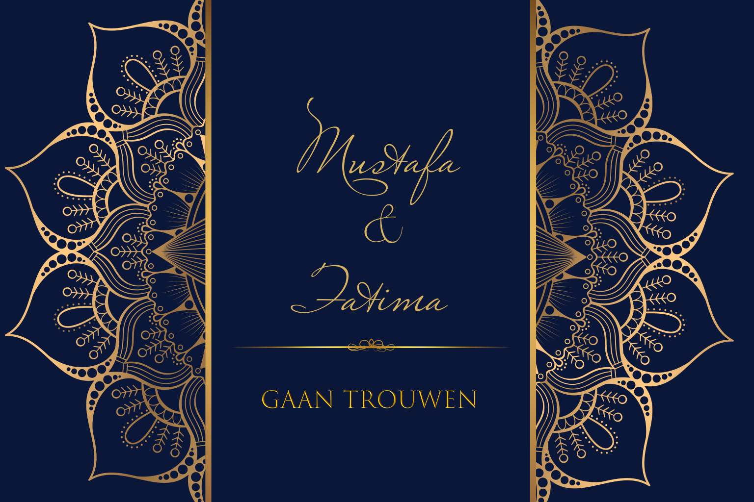 Trouwkaart liggend gouden ornamenten
