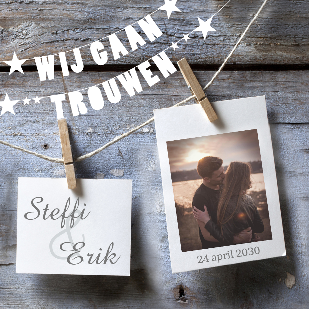 Trouwkaart uitnodiging met hippe polaroids