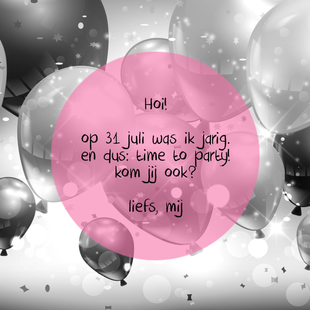 Maak deze frisse uitnodiging met ballonen en leuke cirkel die je eenvoudig van kleur kunt veranderen! (6976)