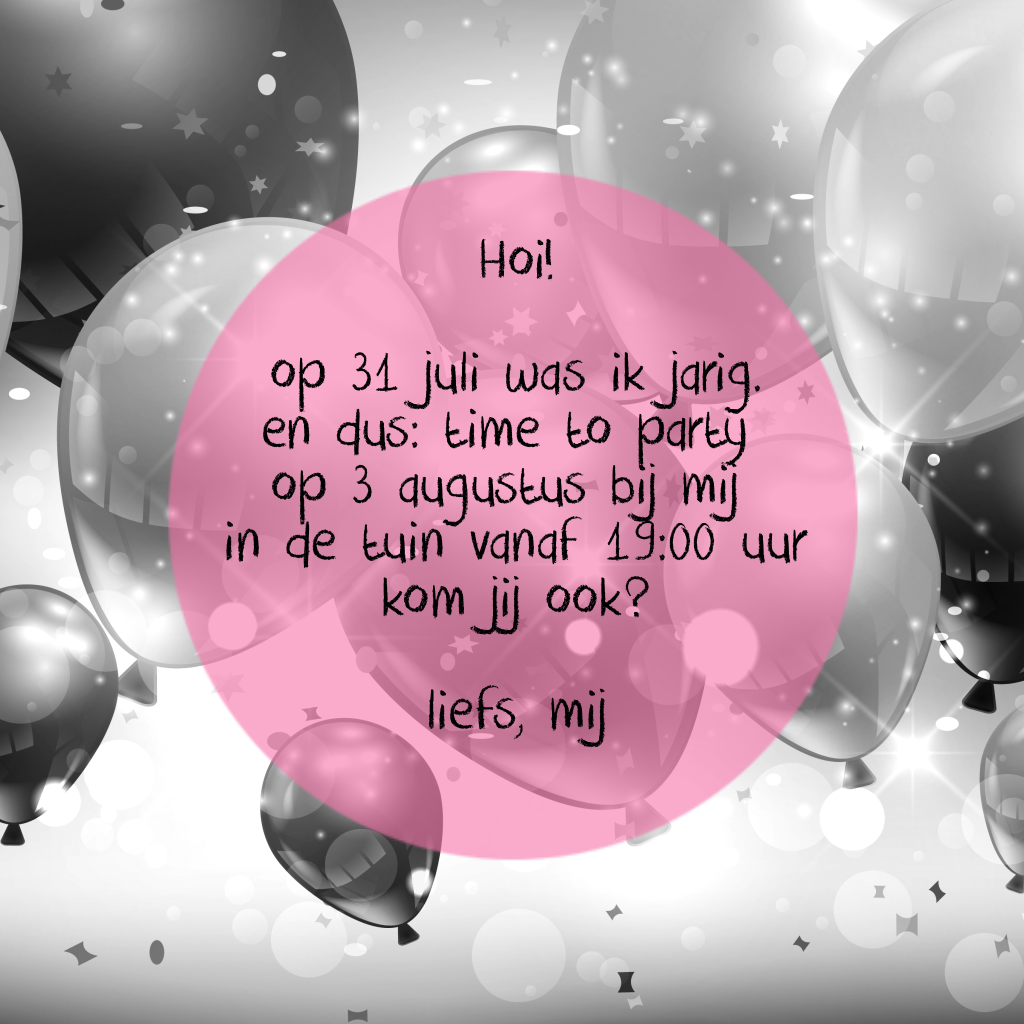 Maak deze frisse uitnodiging met ballonen en leuke cirkel die je eenvoudig van kleur kunt veranderen! (6976)
