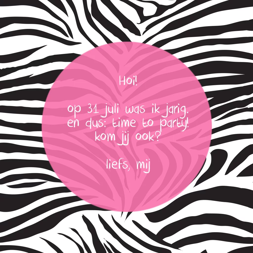 Maak deze frisse uitnodiging met grafische dierenhuid en leuke cirkel die je eenvoudig van kleur kunt veranderen! (6973)