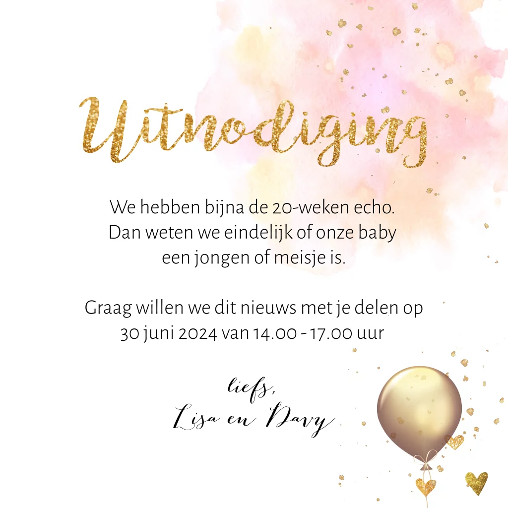 Wil je graag met je familie en dierbaren een gender revealparty houden. Maak het alvast een feestje in de brievenbus met deze uitnodiging! (23735)