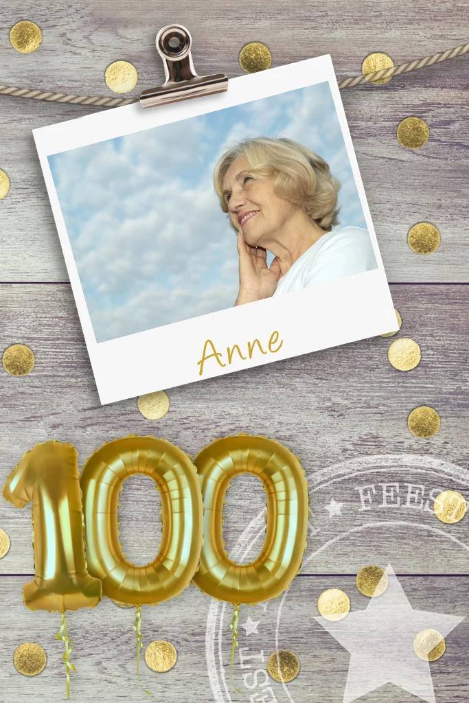 Uitnodiging 100 jarige verjaardag met hout en ballonnen