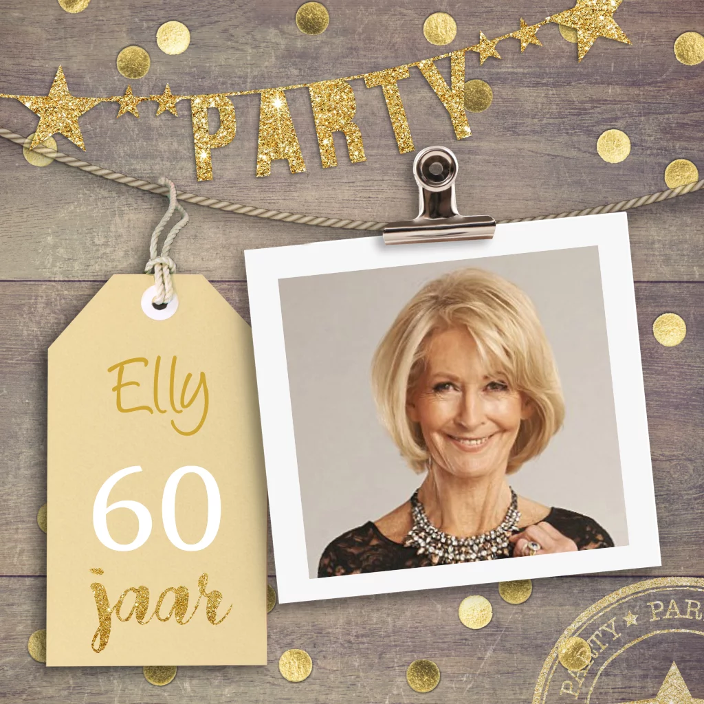 Uitnodiging verjaardag 60 jaar met foto en glitters