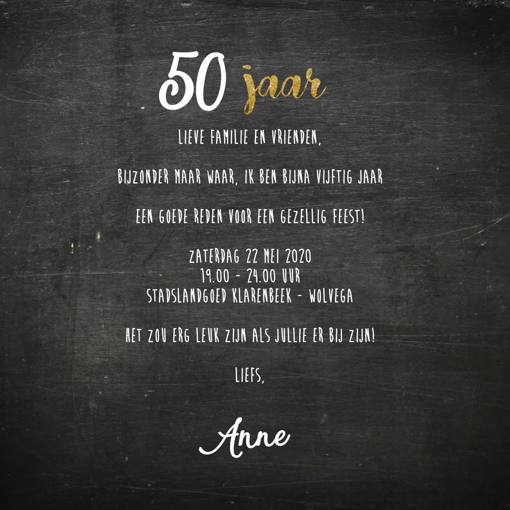 Uitnodiging verjaardag 50 jaar met confetti
