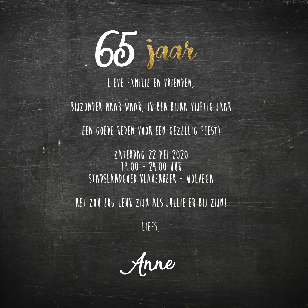 Uitnodiging verjaardag 65 met confetti