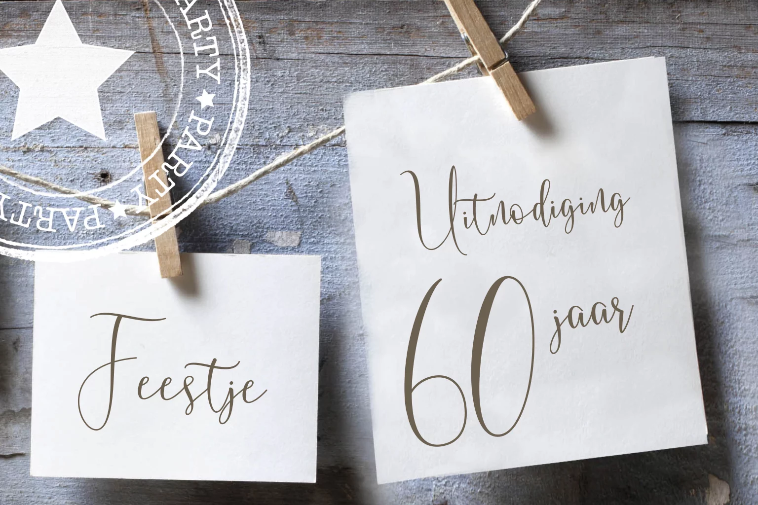 Verjaardagsuitnodiging 60 jaar liggend polaroid hout