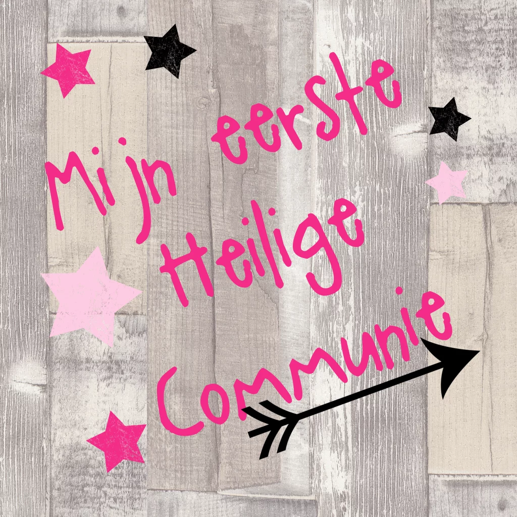 Stoer communiekaartje meisje met hout en sterren