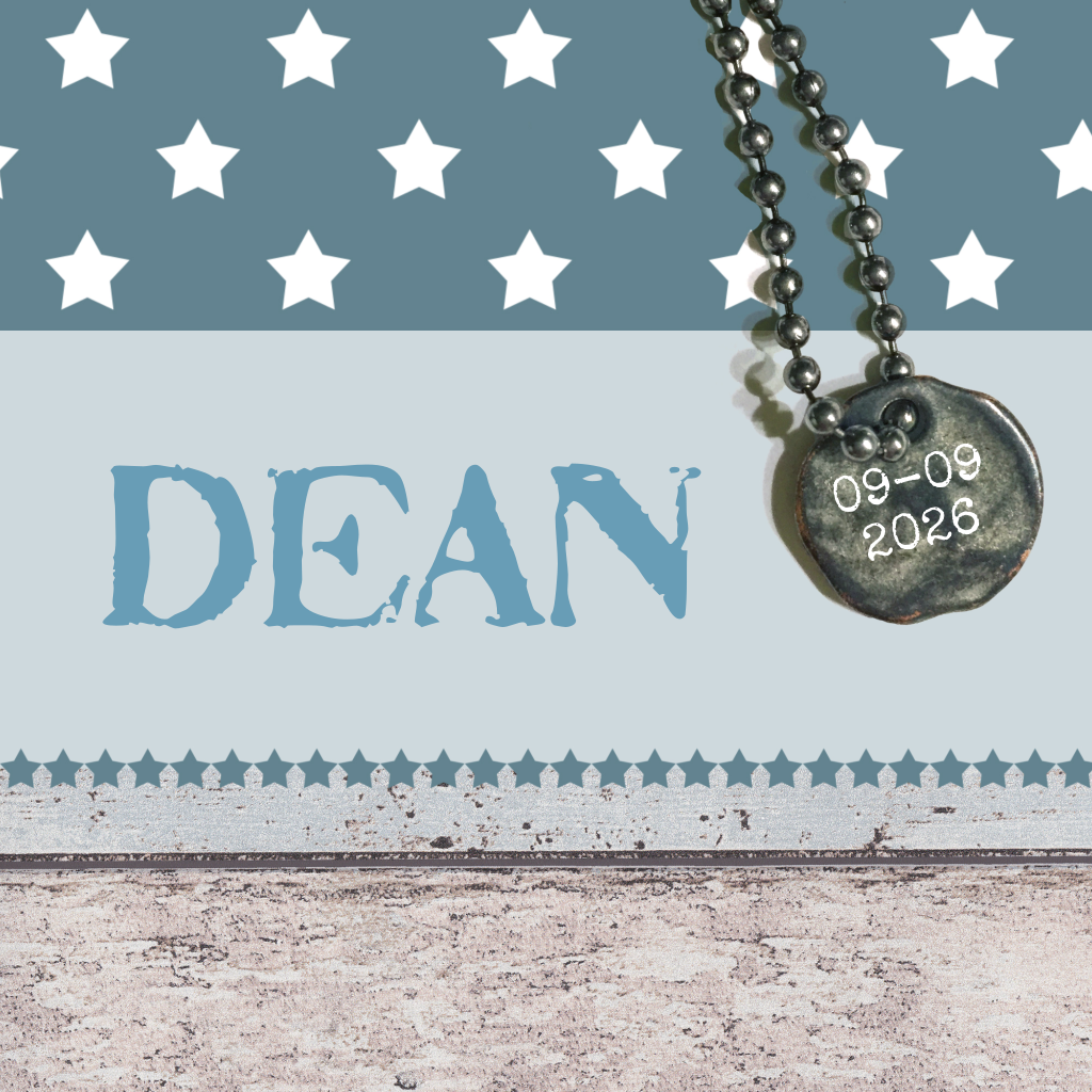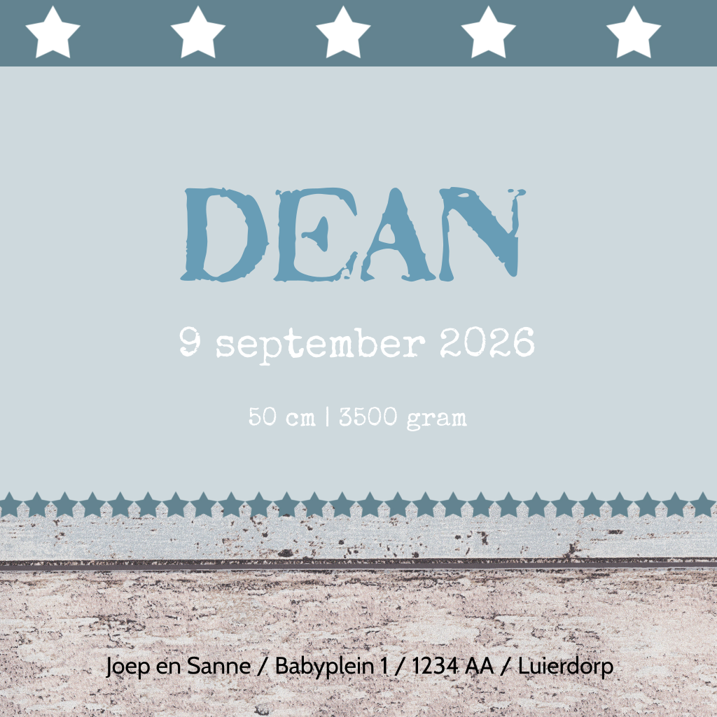 Super stoer geboortekaartje voor een jongen met hout, sterren, metalen hanger, blauw. (3022)