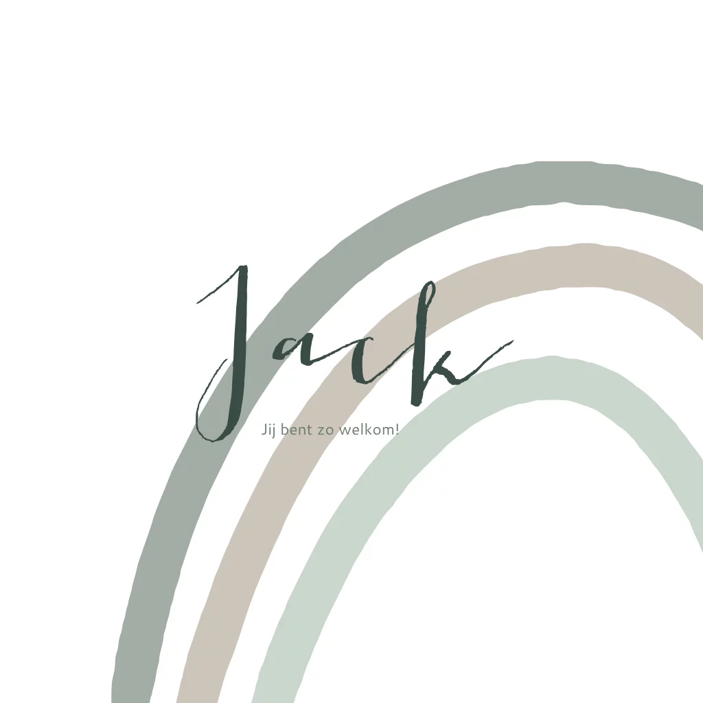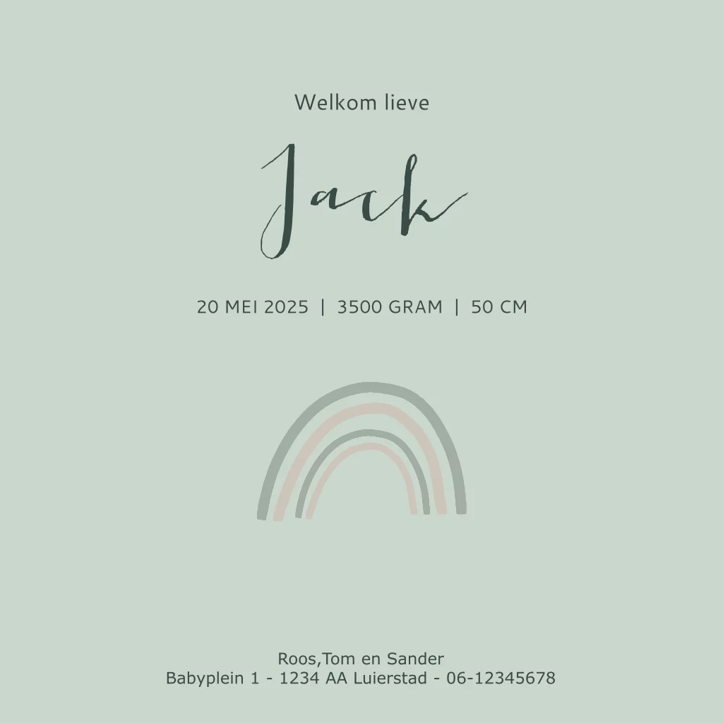 Jongens geboortekaartje met regenboog in trendy groen en beige. (21551)
