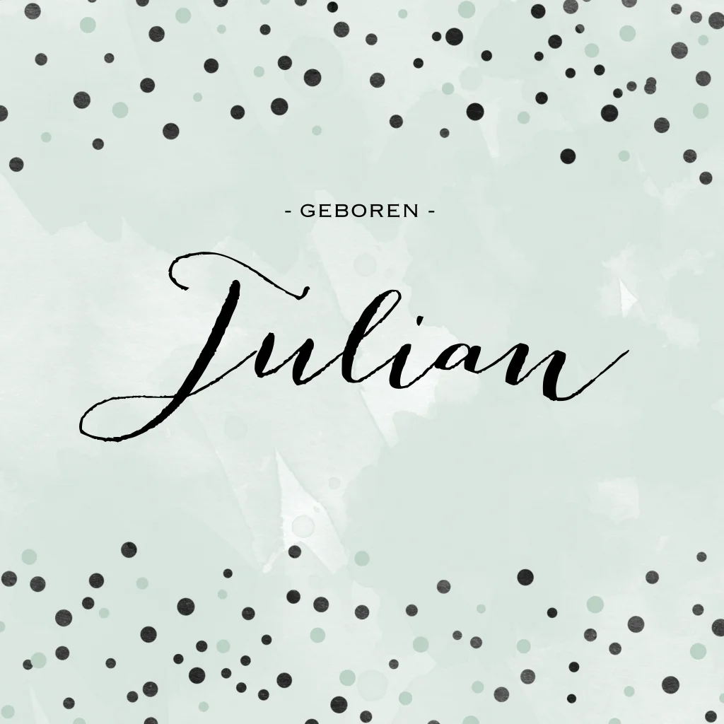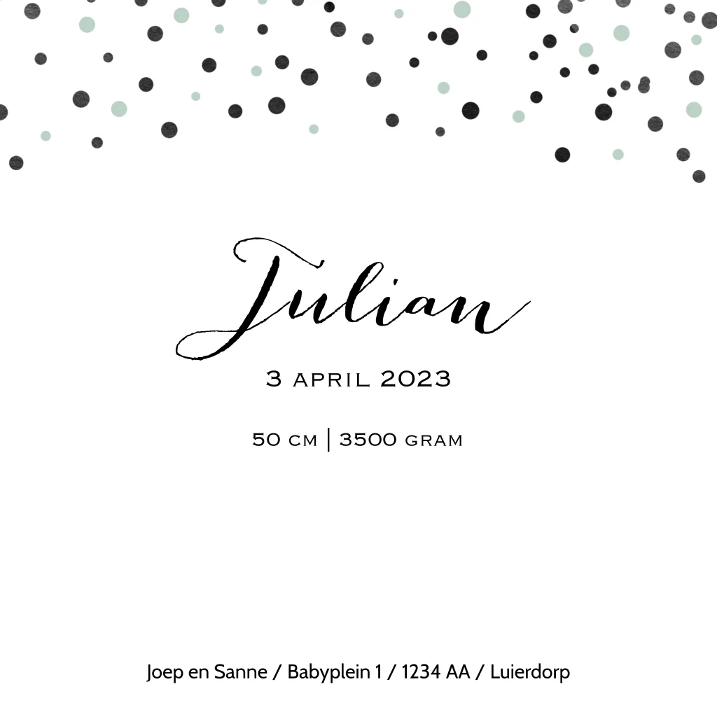 Geboortekaartje met groene aquarel en stippen voor een jongetje. (2933)