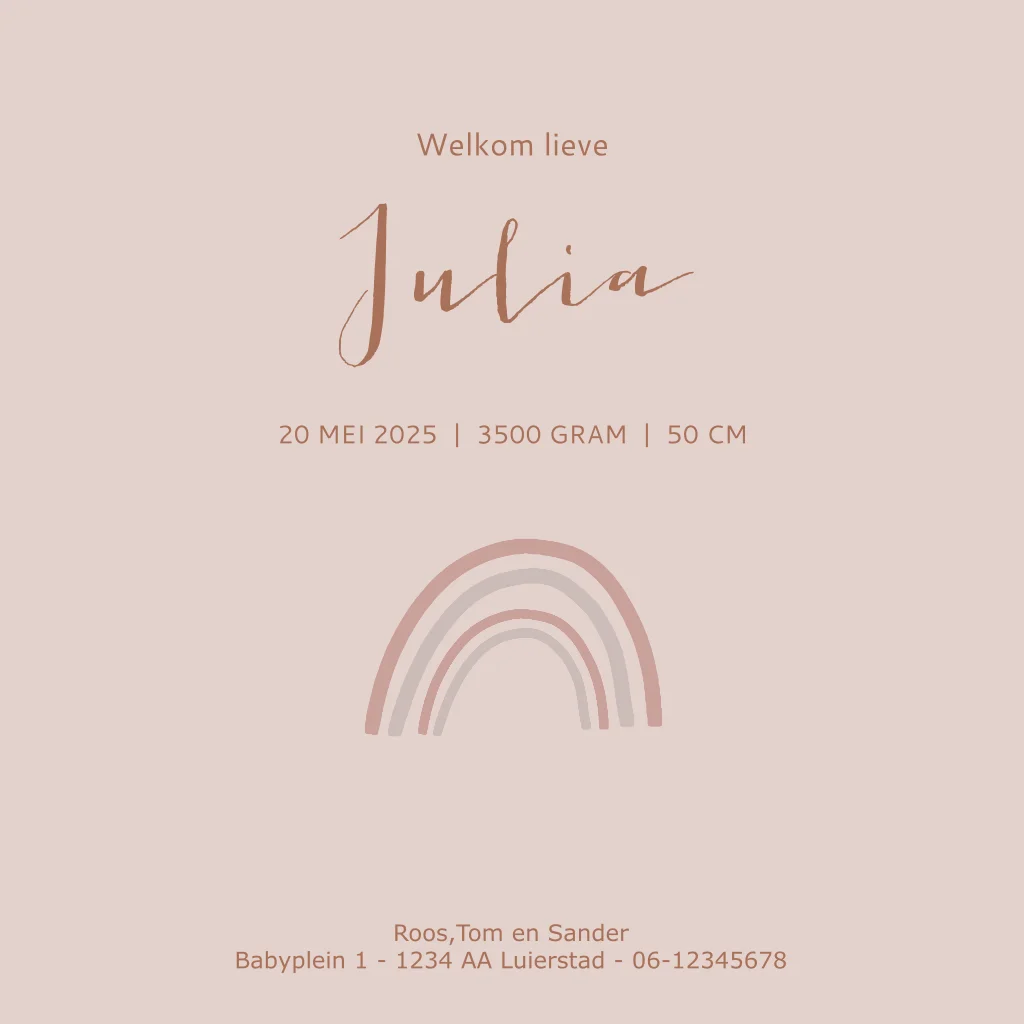 Geboortekaartje voor een meisje met regenboog in trendy kleuren. (21563)
