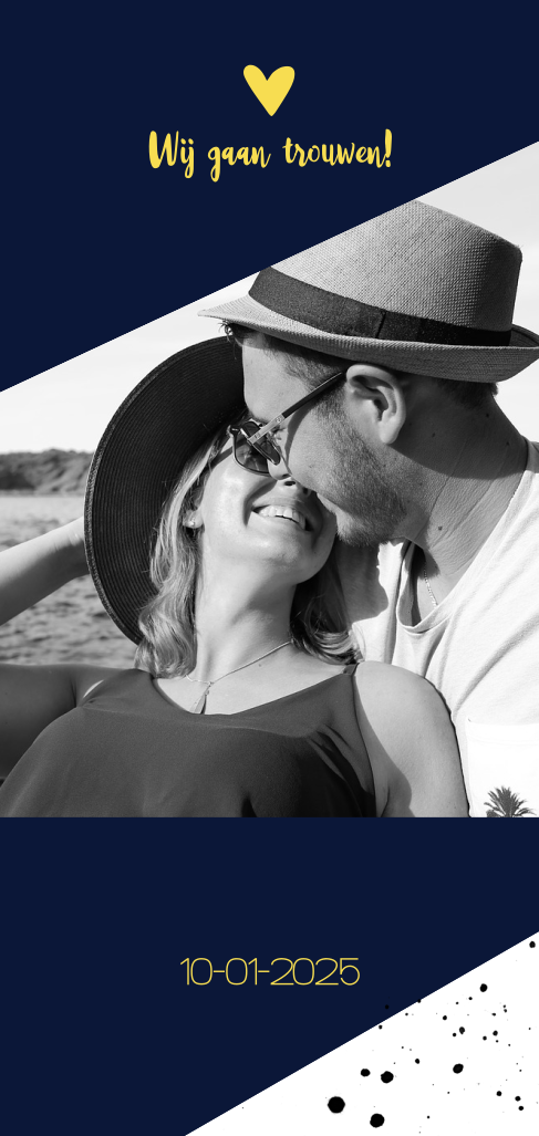 Trouwkaart geometrisch vormen blauw met eigen foto