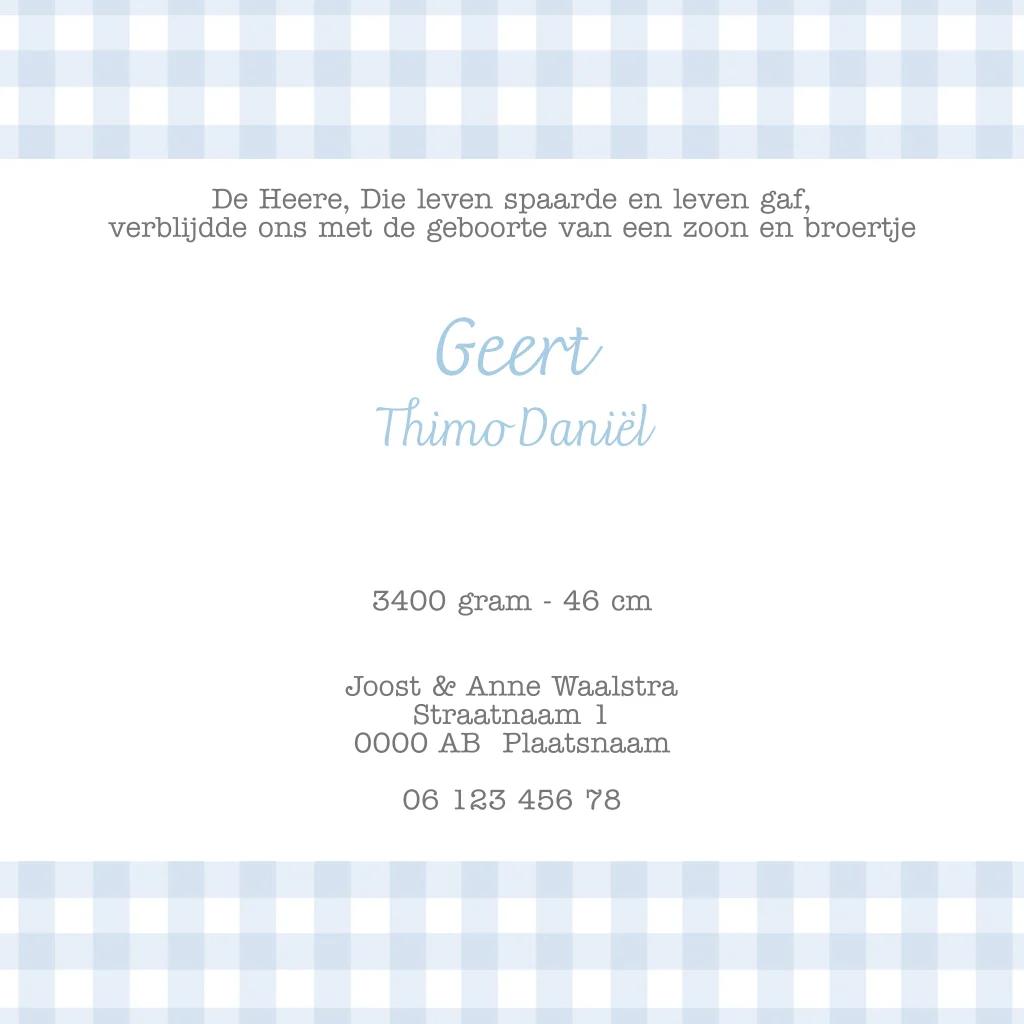 Geboortekaart jongen klassiek met lichtblauwe ruitjes