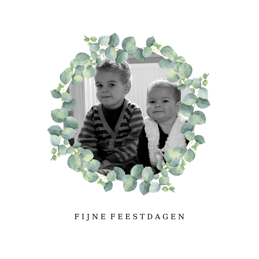 Een minimalistische kerstkaart met eucalyptus krans. Plaats hierin je mooiste foto of tekst. (23870)