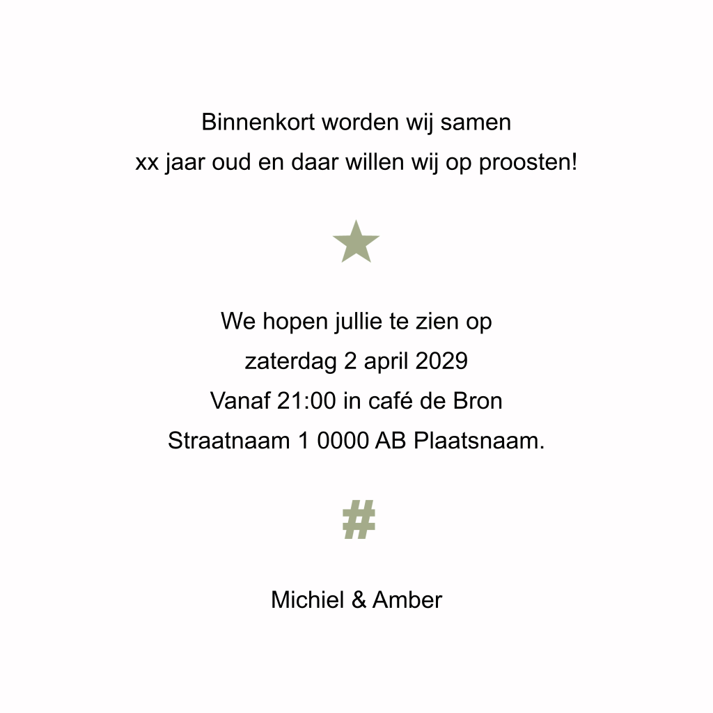 Een stoere uitnodiging samen 100 in groene kleur. De tekst in de lightbox is aan te passen naar wens. Voor iedere leeftijd. (23042)