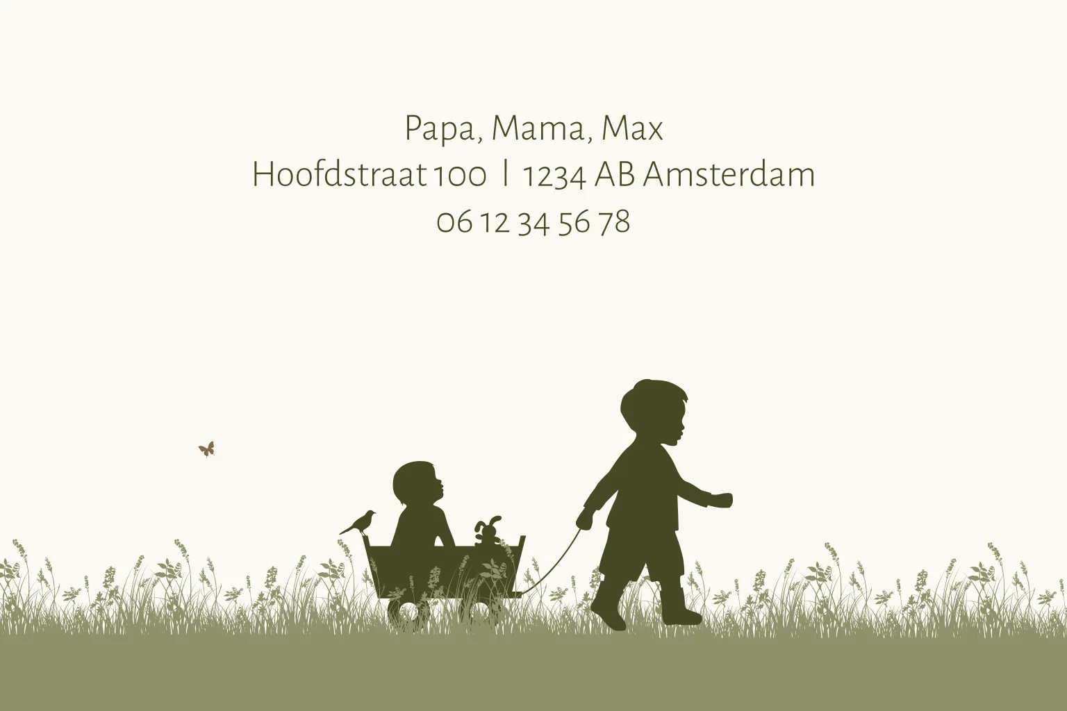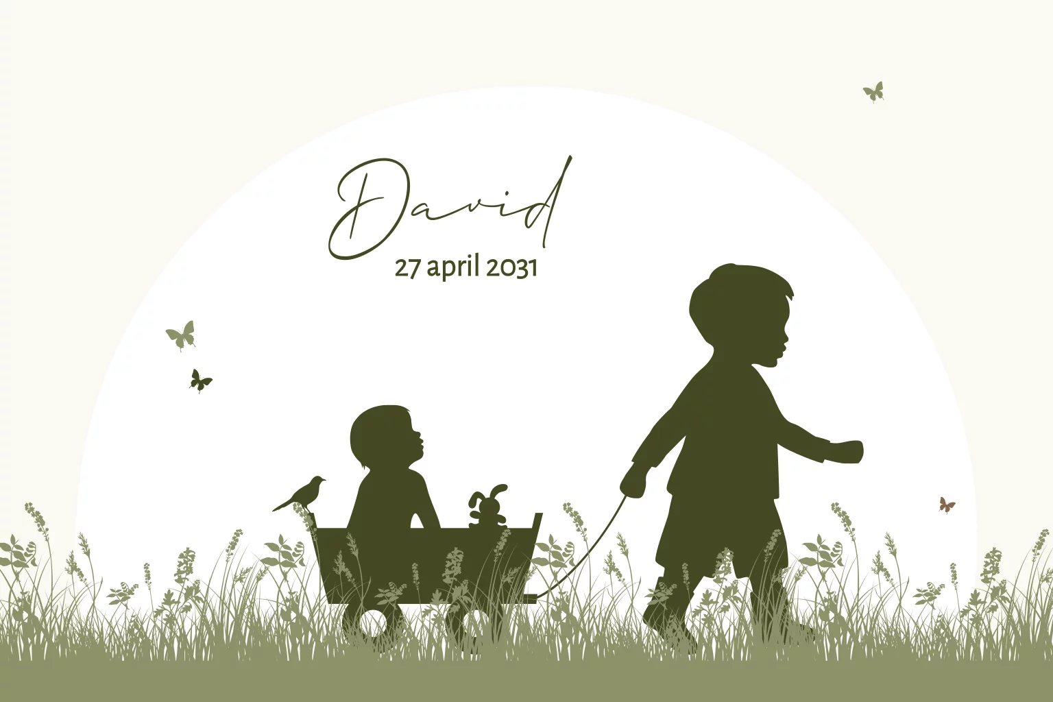 Geboortekaartje 2e kindje jongen bolderkar met broer