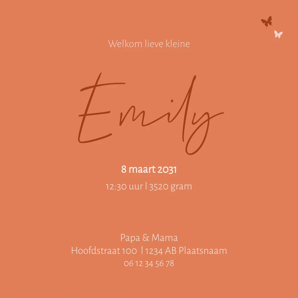 Silhouet geboortekaartje voor een meisje! Met baby in kinderwagen, konijntje en vlinders. (24408)