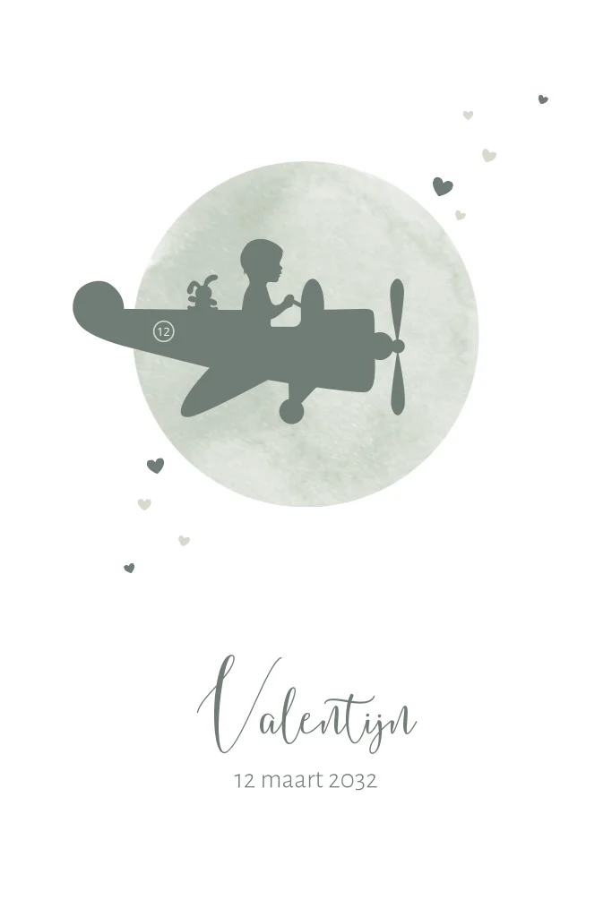 Geboortekaartje voor een jongetje met silhouet van vliegtuigje