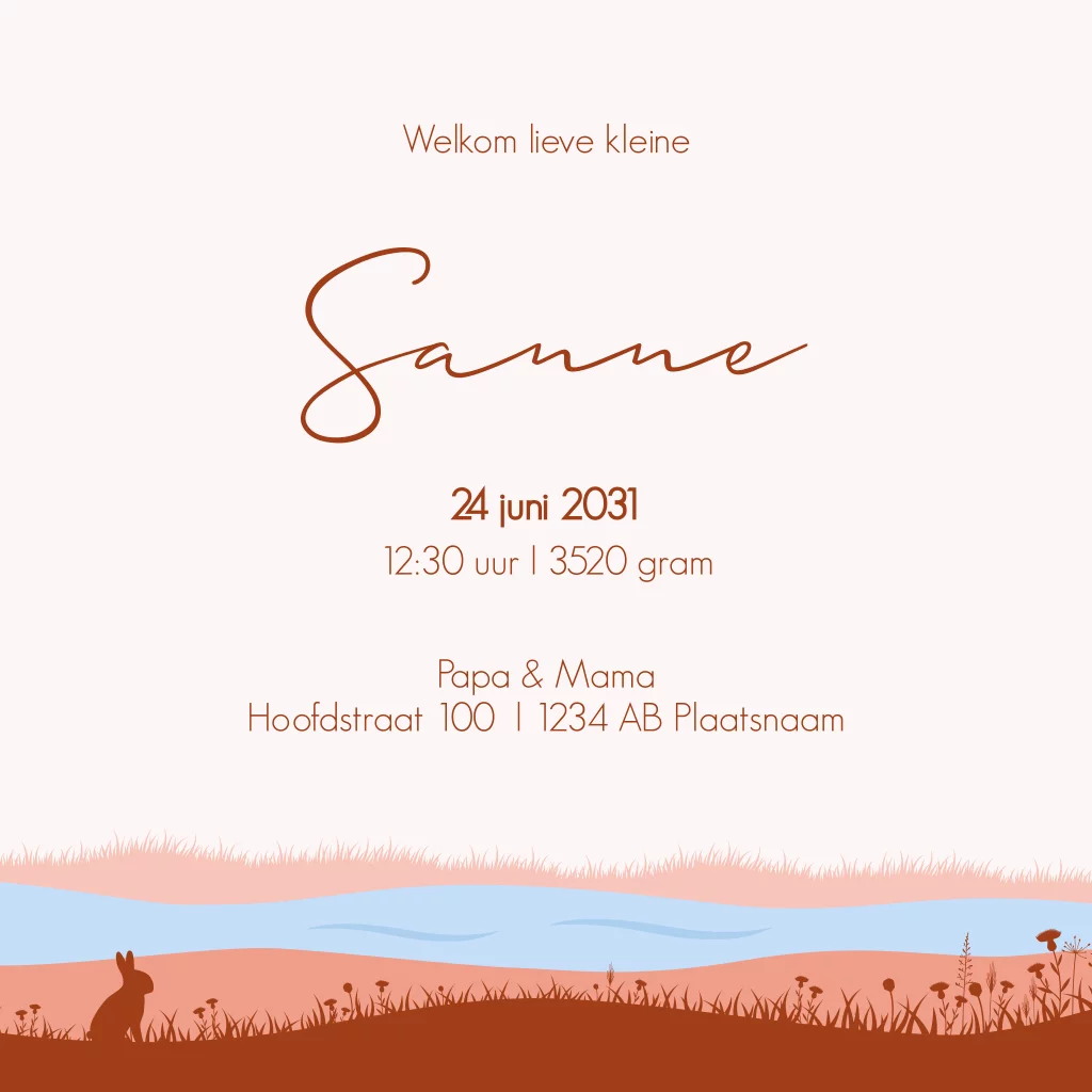 Geboortekaartje met silhouet van baby meisje in landschap