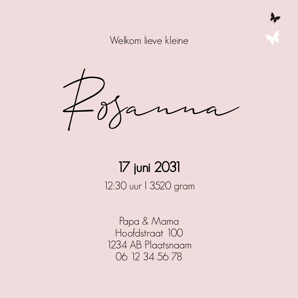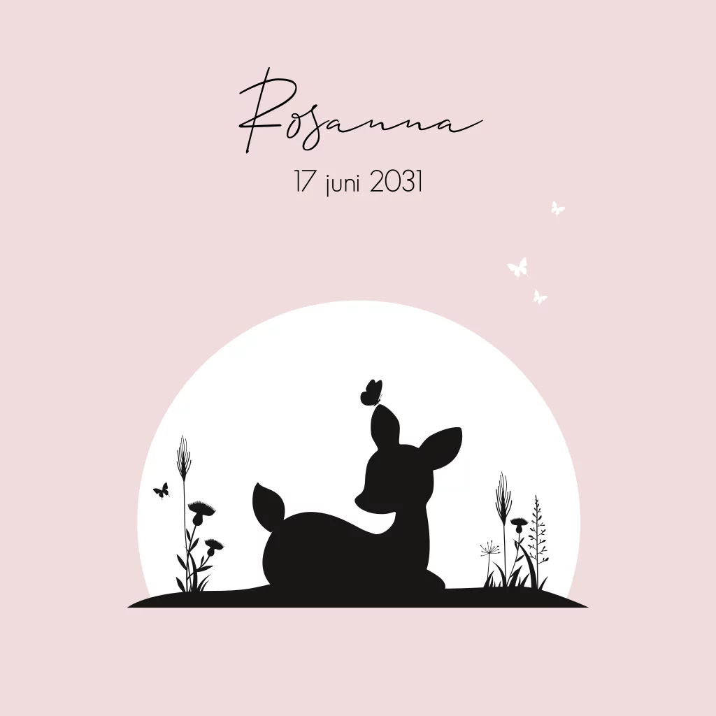 Lief silhouet geboortekaartje meisje met hertje en vlinder voor een meisje. (23881)