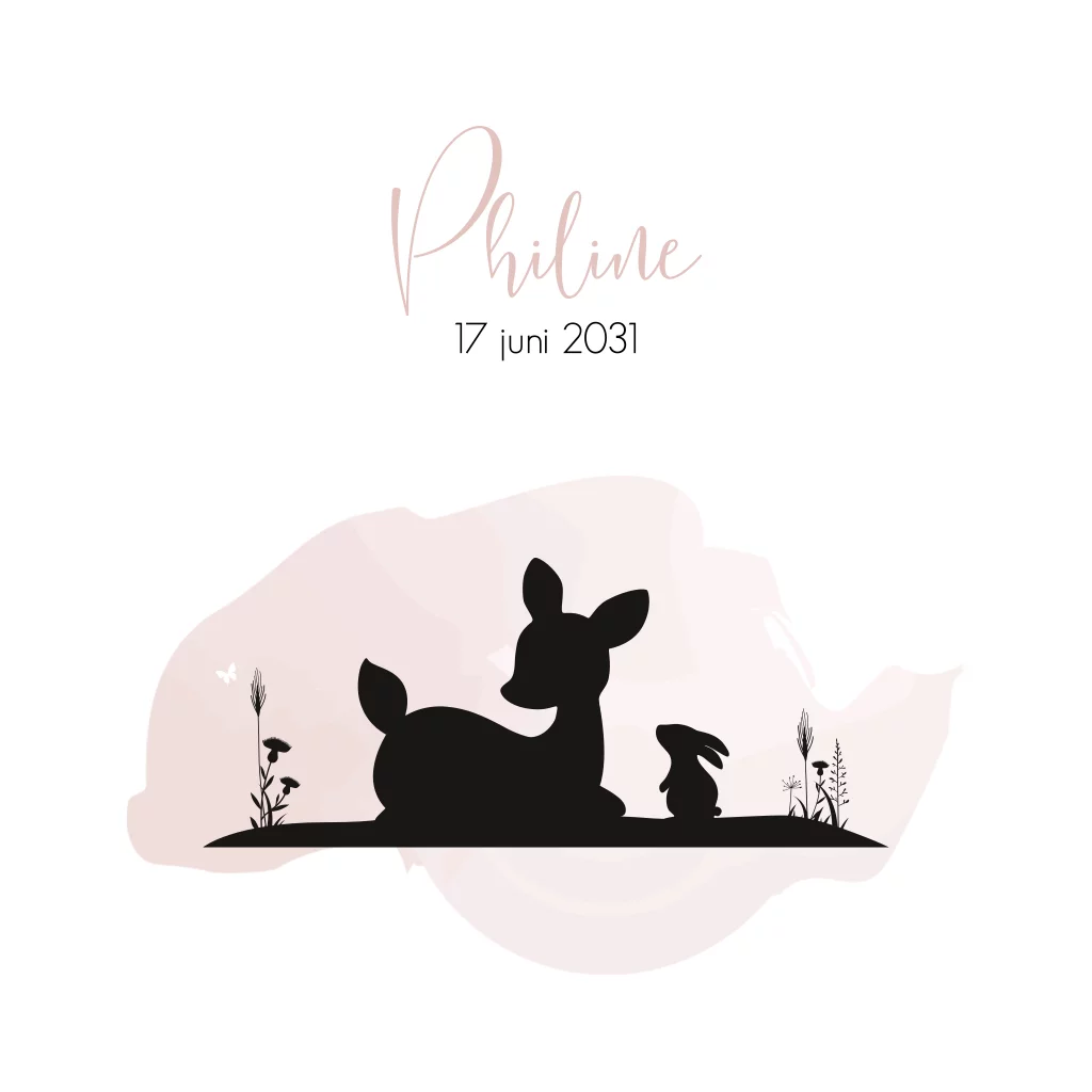 Silhouet geboortekaartje met hertje konijn en aquarel achtergrond