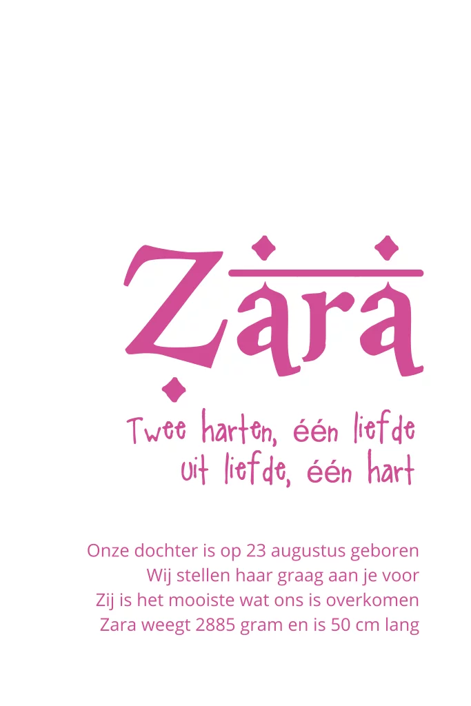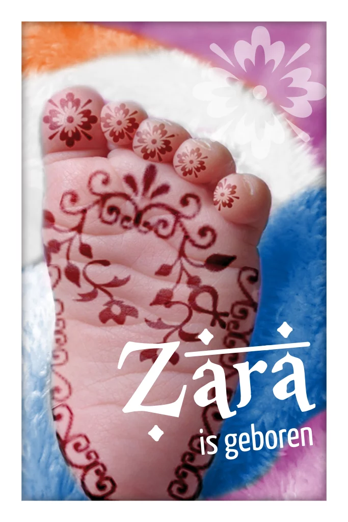 Arabische geboortekaart meisjes met nederlandse vlag. Versierd henna babyvoetje. Achtergrond naar keuze aan te passen. (472)