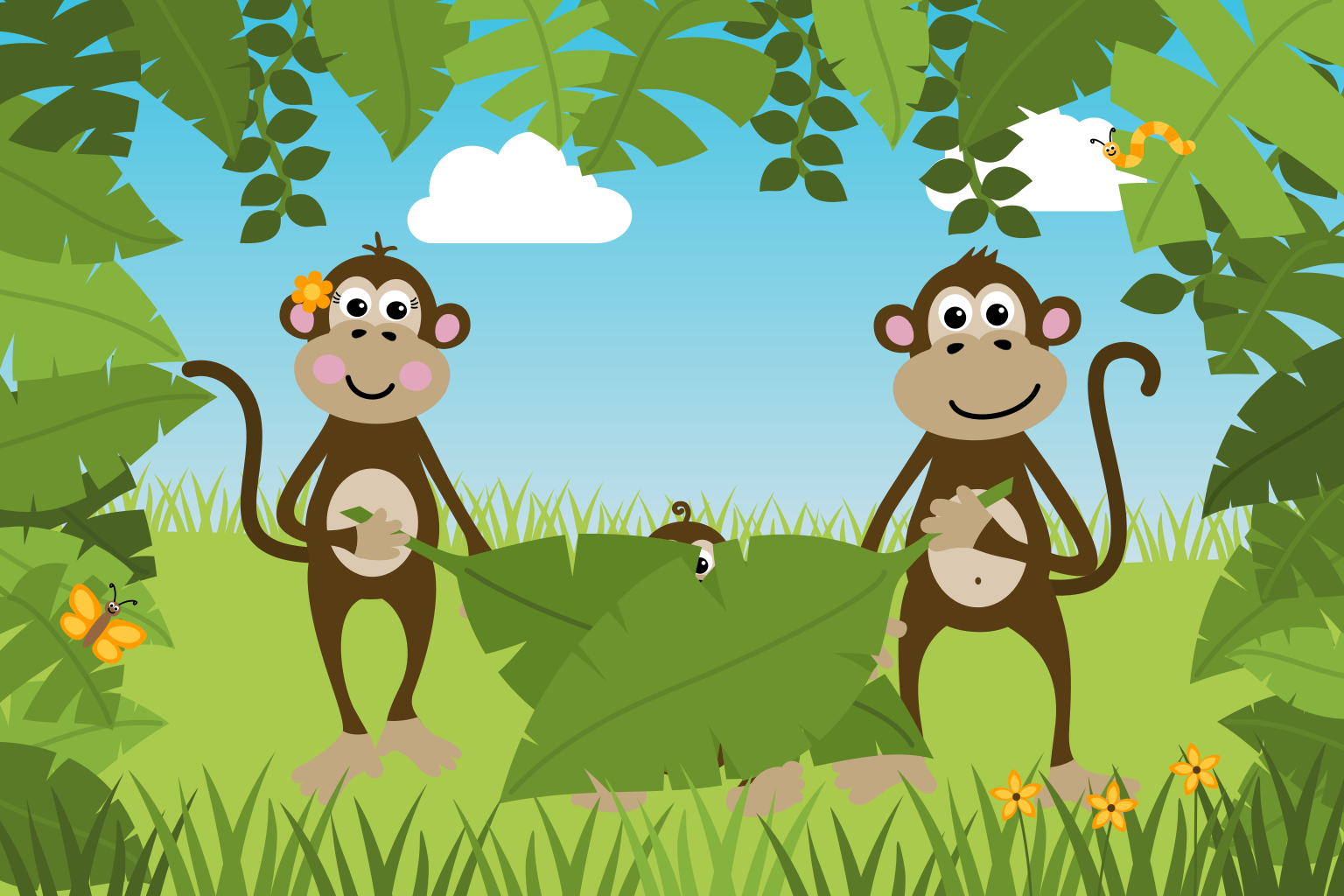 Vrolijk geboortekaartje met aapjes in oerwoud voor jongen