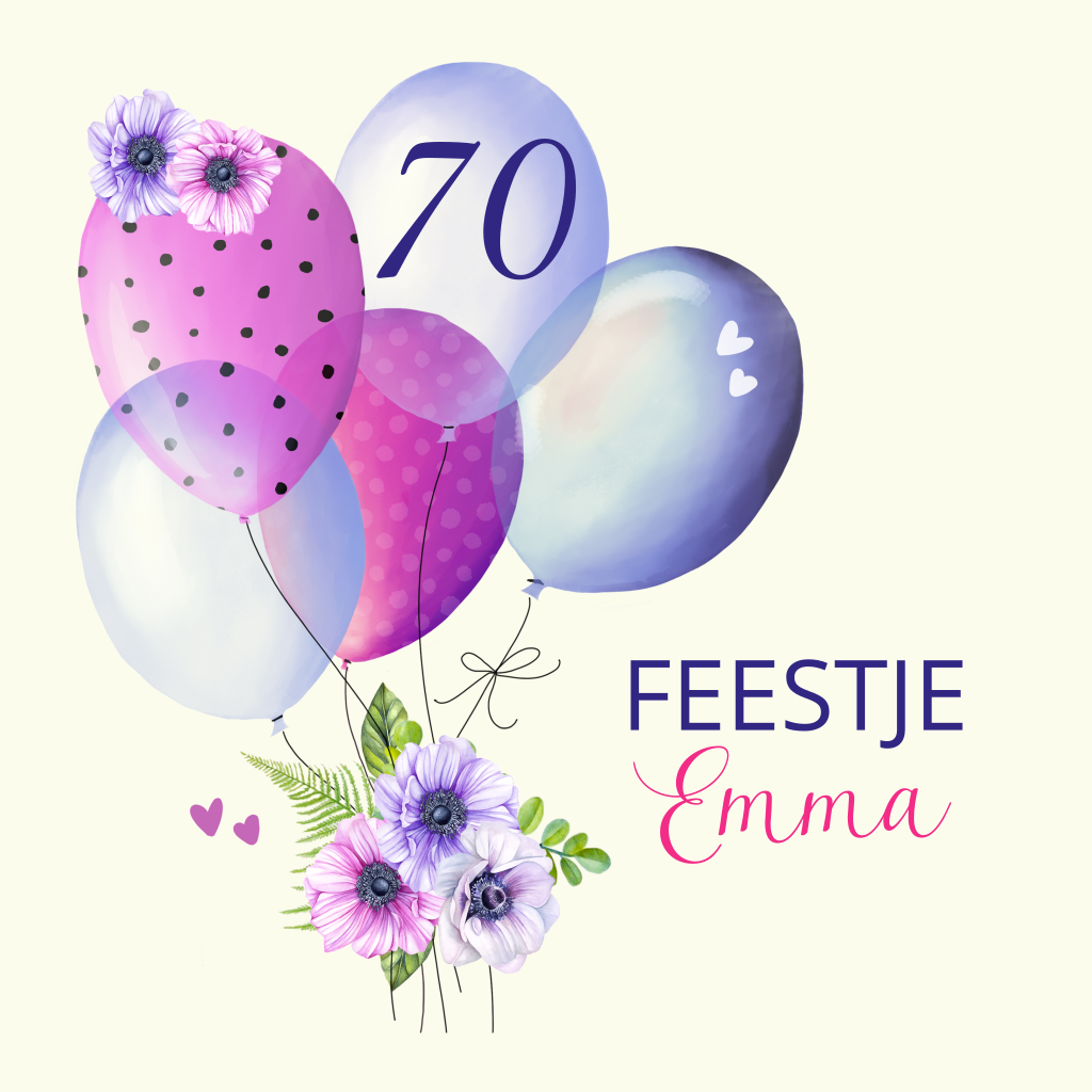 70e verjaardagsuitnodiging met ballonnen en anemonen
