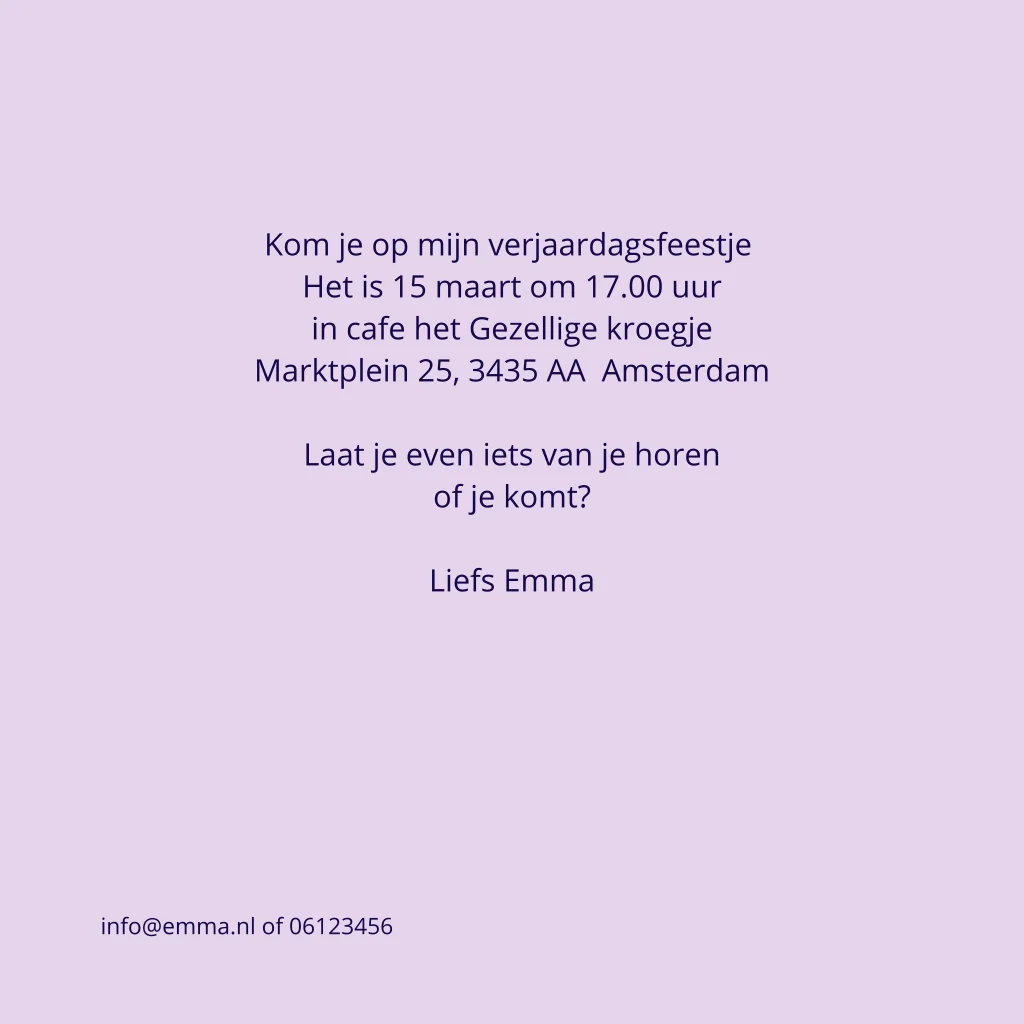 Uitnodiging 80 jaar vrouw feestje met leuke getekende ballonnen vin paars en lika tinten versierd met bloemen anemonen. (23997)