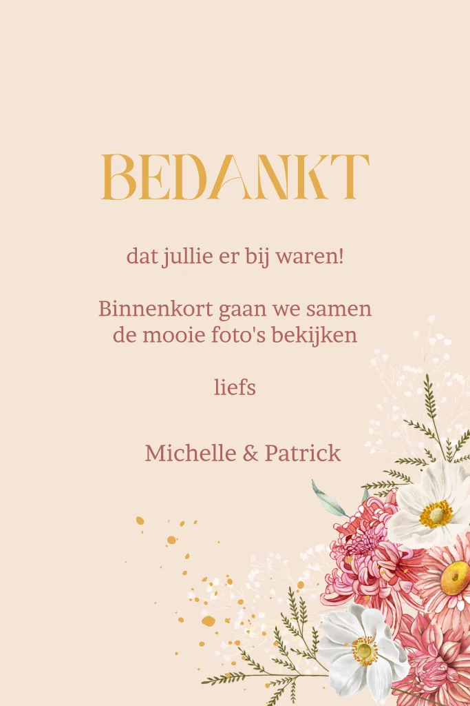 Bedankkaart na het trouwen met dahlia en herfstanemonen. (30126)