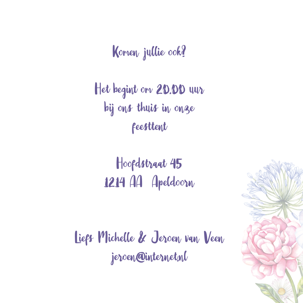 Uitnodiging voor een feestje met een boeket bloemen. (6473)