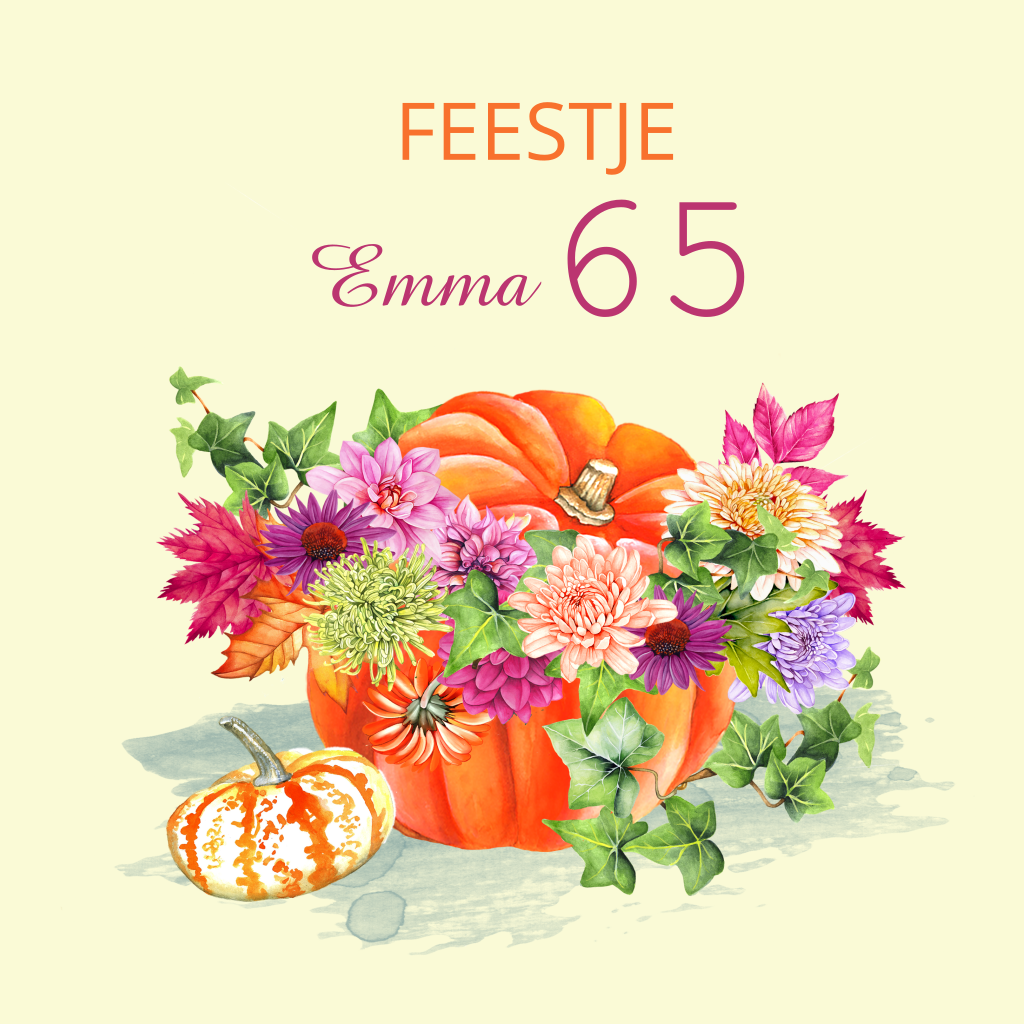 Uitnodiging 65e verjaardag herfst bloemen pompoen