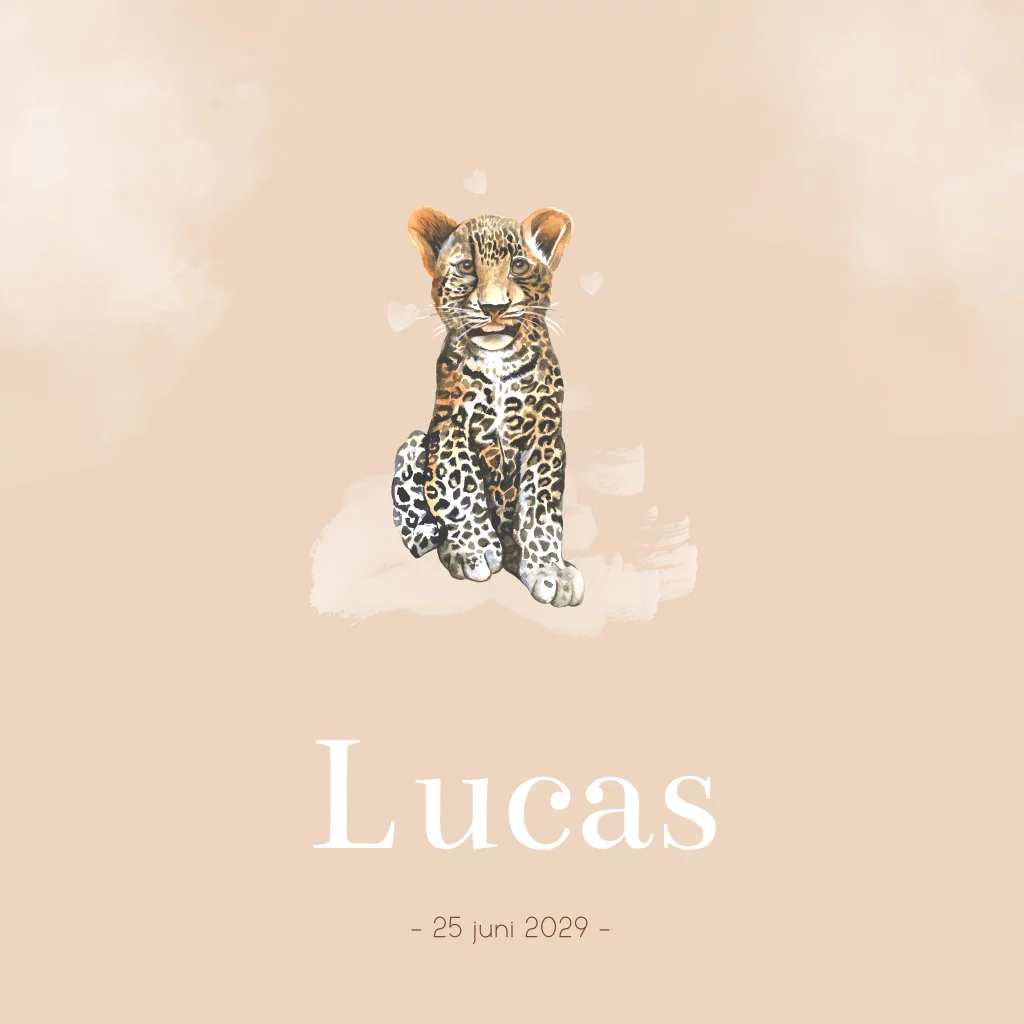 Geboortekaartje voor een jongen met een lief pantertje / panter creme beige achtergrond met kleurverloop. (24653)