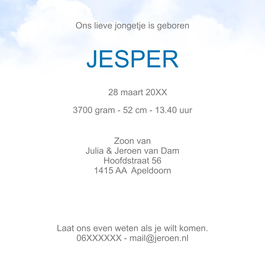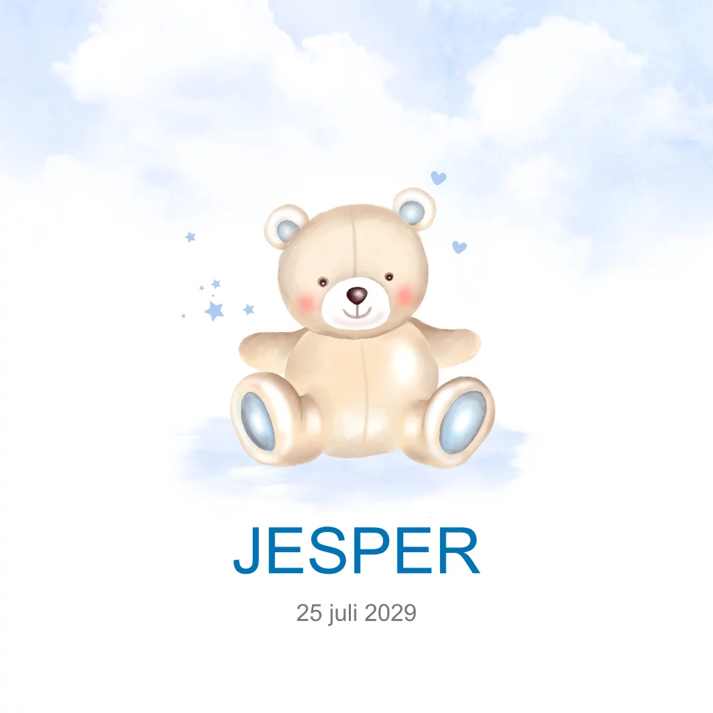Getekend geboortekaartje beer jongen met een lieve beer op een blauwe waterverf achtergrond. (23608)