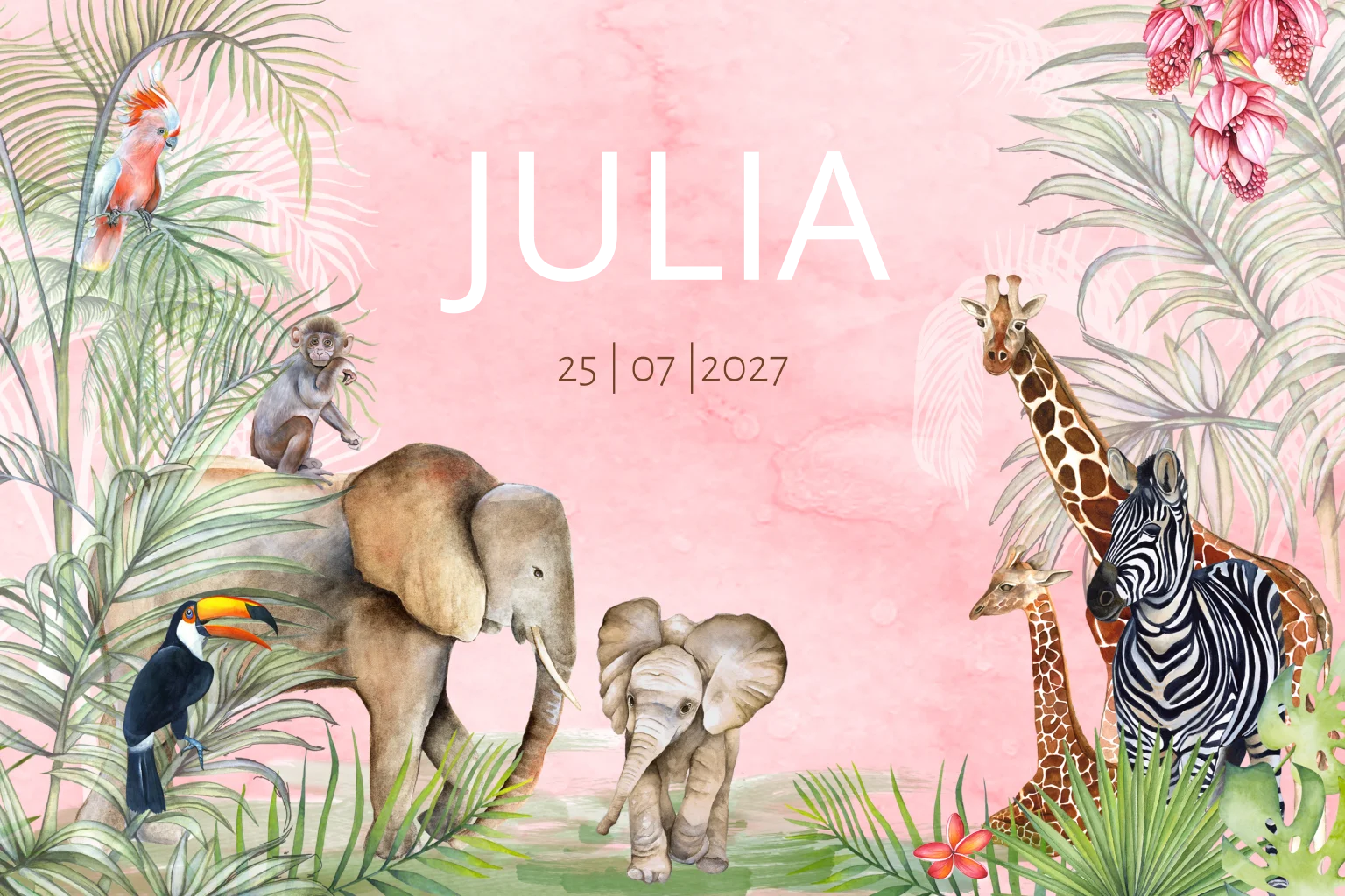 Geboortekaartje voor een meisje in jungle thema met olifant